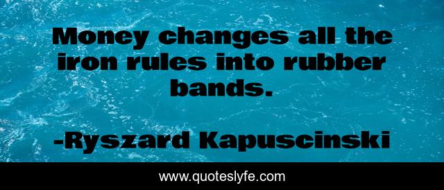 This page presents the quote "Money changes all the iron rules into rubber bands.". Author of this quote is Ryszard Kapuscinski. This quote is about rules, changes, iron,.