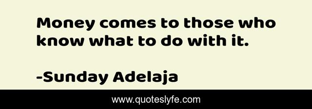 This page presents the quote "Money comes to those who know what to do with it.". Author of this quote is Sunday Adelaja. .