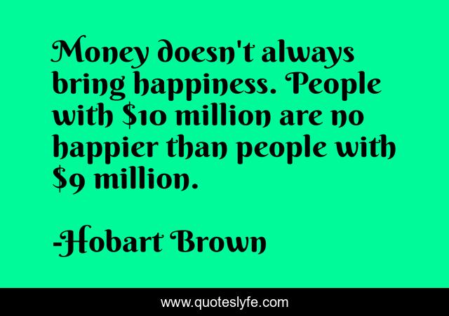 This page presents the quote "Money doesn't always bring happiness. People with $10 million are no happier than people with $9 million.". Author of this quote is Hobart Brown. .