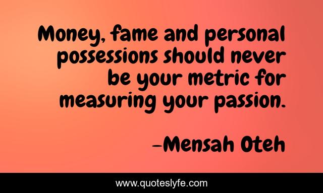 "Mensah Oteh Quotes." Quoteslyfe.com, 2025. Fri. 05 Dec. 2025. <https://www.quoteslyfe.com/quote/Money-fame-and-personal-possessions-should-never-49096>.