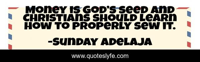 This page presents the quote "Money is God’s seed and Christians should learn how to properly sew it.". Author of this quote is Sunday Adelaja. This quote is about money, christian,.