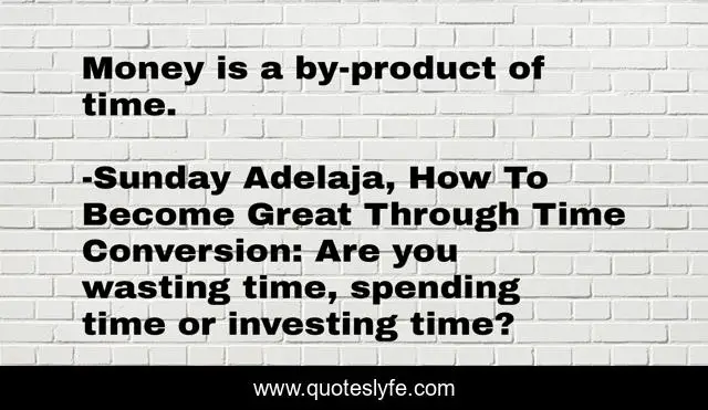 "Sunday Adelaja, How To Become Great Through Time Conversion: Are you wasting time, spending time or investing time? Quotes." Quoteslyfe.com, 2025. Sat. 06 Dec. 2025. <https://www.quoteslyfe.com/quote/Money-is-a-by-product-of-time-38937>.