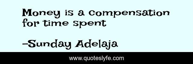This page presents the quote "Money is a compensation for time spent". Author of this quote is Sunday Adelaja. This quote is about life, blessing, finance, money, work, wisdom, time-well-spent, job, joblessness,.