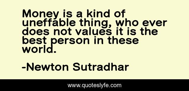 This page presents the quote "Money is a kind of uneffable thing, who ever does not values it is the best person in these world.". Author of this quote is Newton Sutradhar. This quote is about money, best, uneffable,.