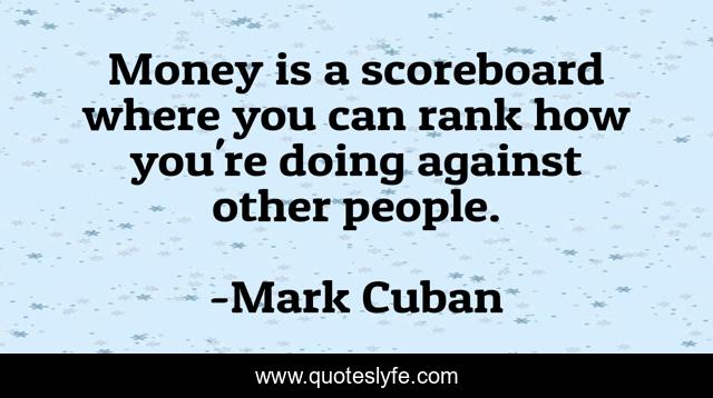 This page presents the quote "Money is a scoreboard where you can rank how you're doing against other people.". Author of this quote is Mark Cuban. .