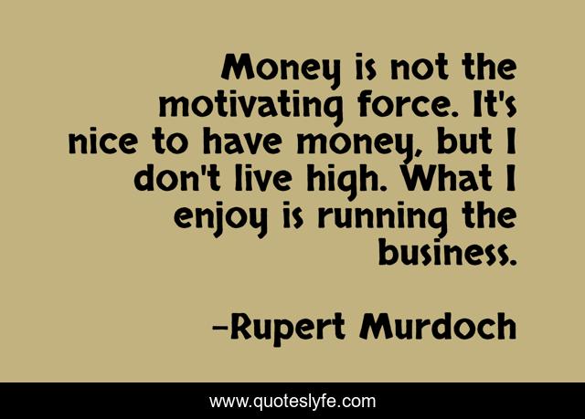 This page presents the quote "Money is not the motivating force. It's nice to have money, but I don't live high. What I enjoy is running the business.". Author of this quote is Rupert Murdoch. This quote is about enjoy, money, live,.