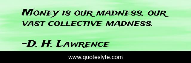 This page presents the quote "Money is our madness, our vast collective madness.". Author of this quote is D. H. Lawrence. This quote is about collective, madness, vast,.