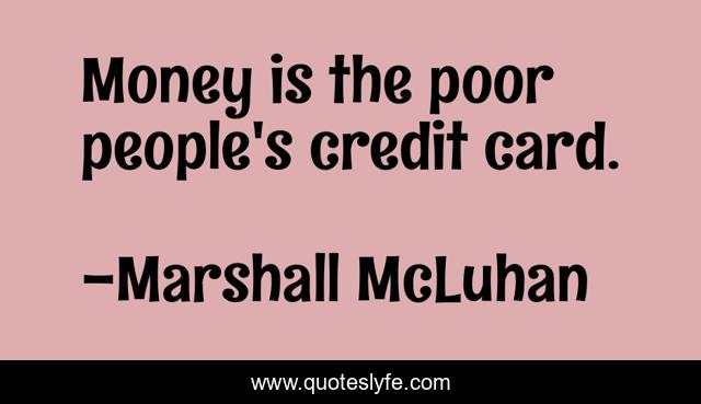 This page presents the quote "Money is the poor people's credit card.". Author of this quote is Marshall McLuhan. .