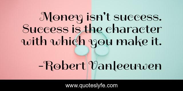 This page presents the quote "Money isn't success. Success is the character with which you make it.". Author of this quote is Robert Vanleeuwen. This quote is about motivation, hope, truth, reality,.