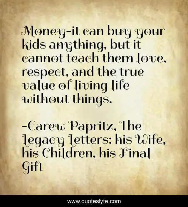 "Carew Papritz, The Legacy Letters: his Wife, his Children, his Final Gift Quotes." Quoteslyfe.com, 2025. Sat. 06 Dec. 2025. <https://www.quoteslyfe.com/quote/Money-it-can-buy-your-kids-anything-100121>.