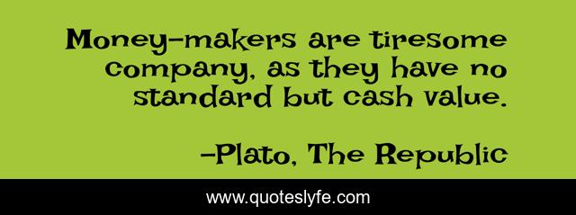 This page presents the quote "Money-makers are tiresome company, as they have no standard but cash value.". Author of this quote is Plato, The Republic. This quote is about money, insult, rich, wealthy,.