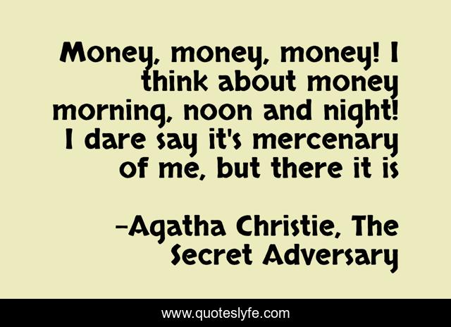 "Agatha Christie, The Secret Adversary Quotes." Quoteslyfe.com, 2025. Sun. 07 Dec. 2025. <https://www.quoteslyfe.com/quote/Money-money-money-I-think-about-money-79963>.