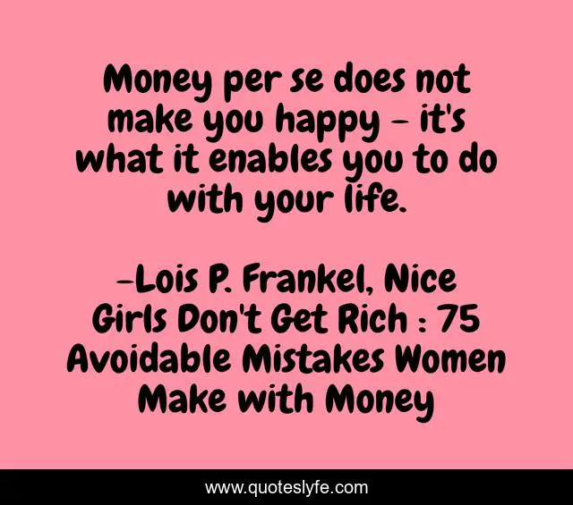 "Lois P. Frankel, Nice Girls Don't Get Rich : 75 Avoidable Mistakes Women Make with Money Quotes." Quoteslyfe.com, 2025. Fri. 05 Dec. 2025. <https://www.quoteslyfe.com/quote/Money-per-se-does-not-make-you-80223>.