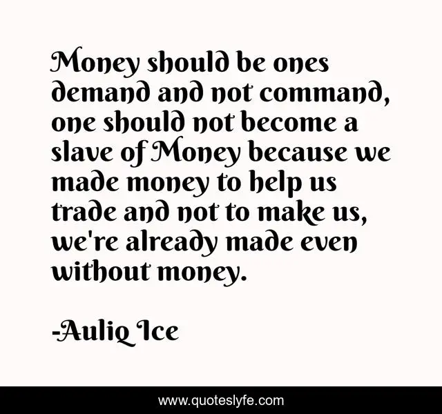 "Auliq Ice Quotes." Quoteslyfe.com, 2025. Fri. 05 Dec. 2025. <https://www.quoteslyfe.com/quote/Money-should-be-ones-demand-and-not-232862>.