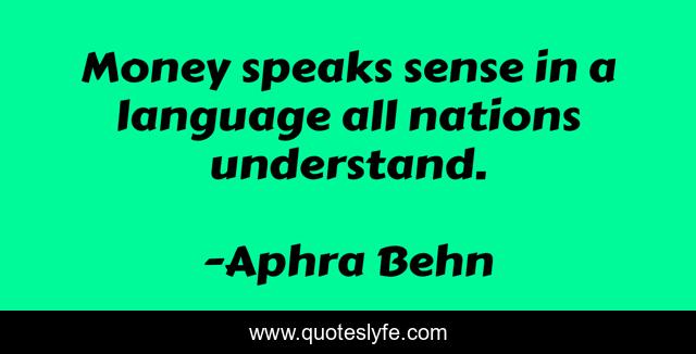 "Aphra Behn Quotes." Quoteslyfe.com, 2025. Sat. 06 Dec. 2025. <https://www.quoteslyfe.com/quote/Money-speaks-sense-in-a-language-all-79810>.