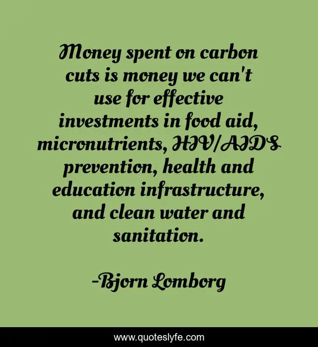 This page presents the quote "Money spent on carbon cuts is money we can't use for effective investments in food aid, micronutrients, HIV/AIDS prevention, health and education infrastructure, and clean water and sanitation.". Author of this quote is Bjorn Lomborg. This quote is about money, education, health,.