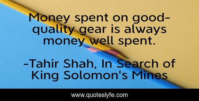 "Tahir Shah, In Search of King Solomon's Mines Quotes." Quoteslyfe.com, 2025. Sat. 06 Dec. 2025. <https://www.quoteslyfe.com/quote/Money-spent-on-good-quality-gear-is-79957>.
