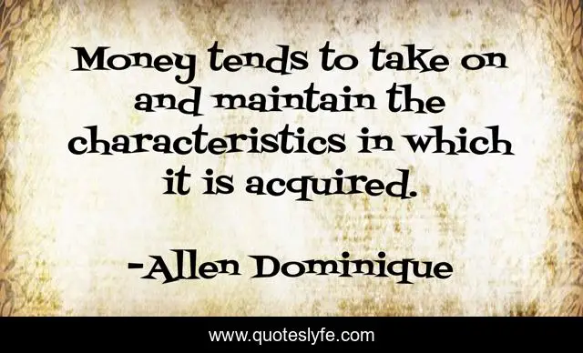 This page presents the quote "Money tends to take on and maintain the characteristics in which it is acquired.". Author of this quote is Allen Dominique. .