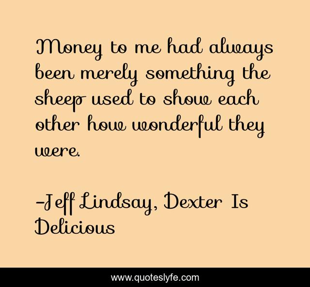 This page presents the quote "Money to me had always been merely something the sheep used to show each other how wonderful they were.". Author of this quote is Jeff Lindsay, Dexter Is Delicious. This quote is about sheep, money,.