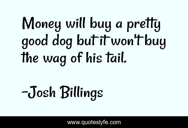 This page presents the quote "Money will buy a pretty good dog but it won't buy the wag of his tail.". Author of this quote is Josh Billings. .