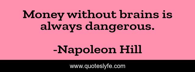 This page presents the quote "Money without brains is always dangerous.". Author of this quote is Napoleon Hill. This quote is about dangerous, without, always,.