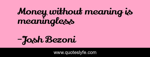"Josh Bezoni Quotes." Quoteslyfe.com, 2025. Sat. 06 Dec. 2025. <https://www.quoteslyfe.com/quote/Money-without-meaning-is-meaningless-80442>.