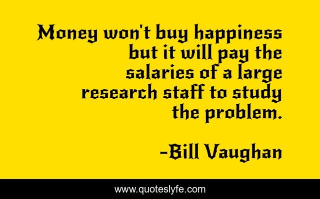 This page presents the quote "Money won't buy happiness but it will pay the salaries of a large research staff to study the problem.". Author of this quote is Bill Vaughan. .