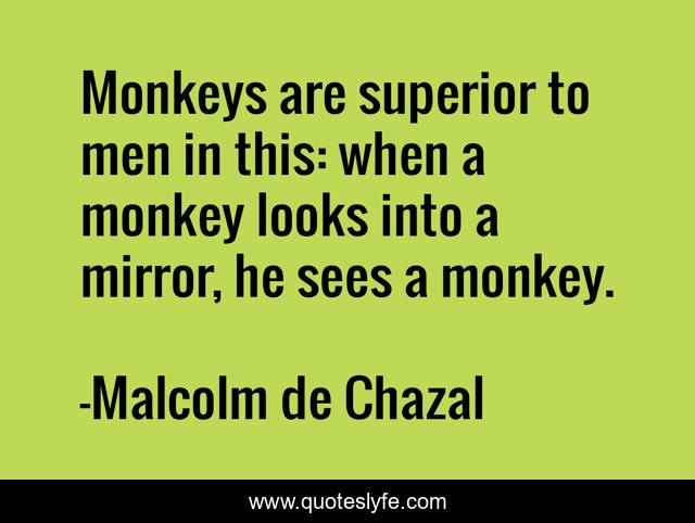 This page presents the quote "Monkeys are superior to men in this: when a monkey looks into a mirror, he sees a monkey.". Author of this quote is Malcolm de Chazal. This quote is about humans, humor, monkeys, mirrors,.