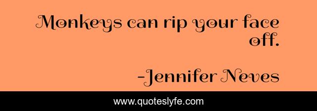 This page presents the quote "Monkeys can rip your face off.". Author of this quote is Jennifer Neves. .