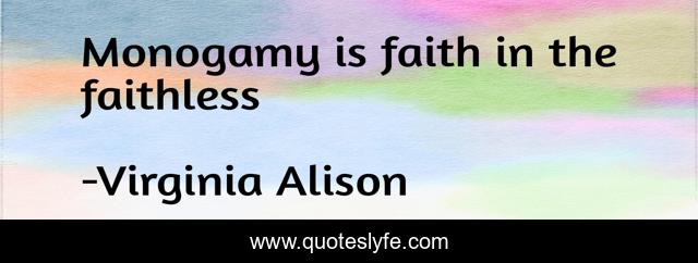 This page presents the quote "Monogamy is faith in the faithless". Author of this quote is Virginia Alison. This quote is about faith, monogamy, love, affection,.