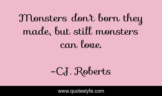 This page presents the quote "Monsters don't born they made, but still monsters can love.". Author of this quote is C.J. Roberts. .