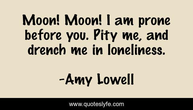 This page presents the quote "Moon! Moon! I am prone before you. Pity me, and drench me in loneliness.". Author of this quote is Amy Lowell. This quote is about loneliness, moon,.
