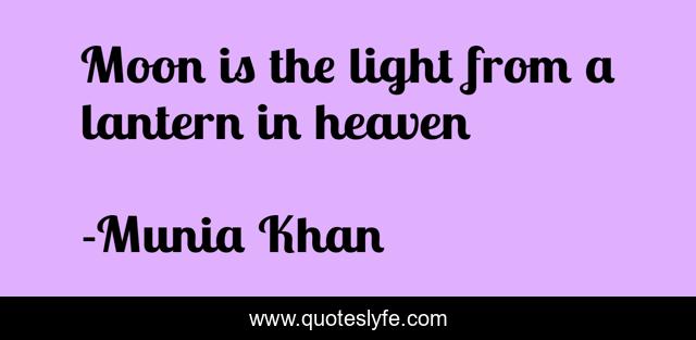 This page presents the quote "Moon is the light from a lantern in heaven". Author of this quote is Munia Khan. This quote is about beauty-in-nature, heaven, beauty, lanterns, heaven-on-earth, poetry, moon, moonlight, literature,.