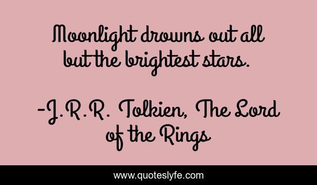 This page presents the quote "Moonlight drowns out all but the brightest stars.". Author of this quote is J.R.R. Tolkien, The Lord of the Rings. This quote is about light, moon, stars, sense-of-wonder,.