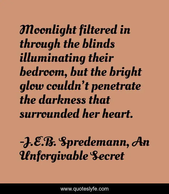 "J.E.B. Spredemann, An Unforgivable Secret Quotes." Quoteslyfe.com, 2025. Fri. 05 Dec. 2025. <https://www.quoteslyfe.com/quote/Moonlight-filtered-in-through-the-blinds-illuminating-113672>.