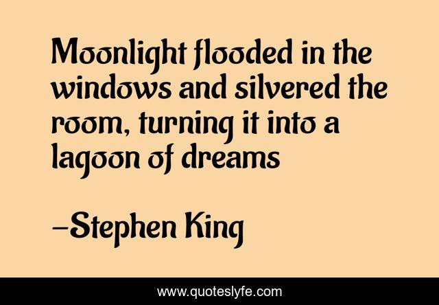 This page presents the quote "Moonlight flooded in the windows and silvered the room, turning it into a lagoon of dreams". Author of this quote is Stephen King. This quote is about stephen-king, horror, salem-s-lot, vampires,.