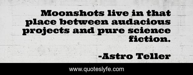 This page presents the quote "Moonshots live in that place between audacious projects and pure science fiction.". Author of this quote is Astro Teller. This quote is about live, place, between,.