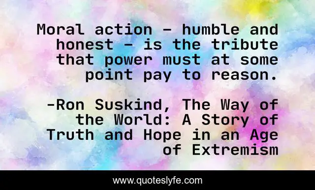 "Ron Suskind, The Way of the World: A Story of Truth and Hope in an Age of Extremism Quotes." Quoteslyfe.com, 2025. Mon. 08 Dec. 2025. <https://www.quoteslyfe.com/quote/Moral-action-humble-and-honest-is-the-64973>.