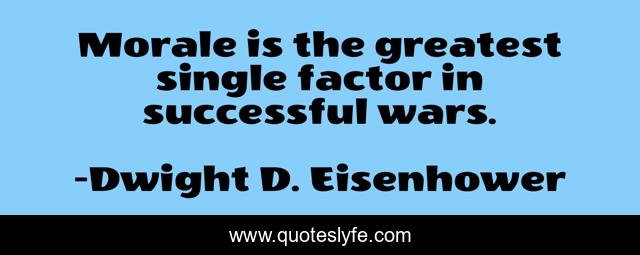 This page presents the quote "Morale is the greatest single factor in successful wars.". Author of this quote is Dwight D. Eisenhower. .