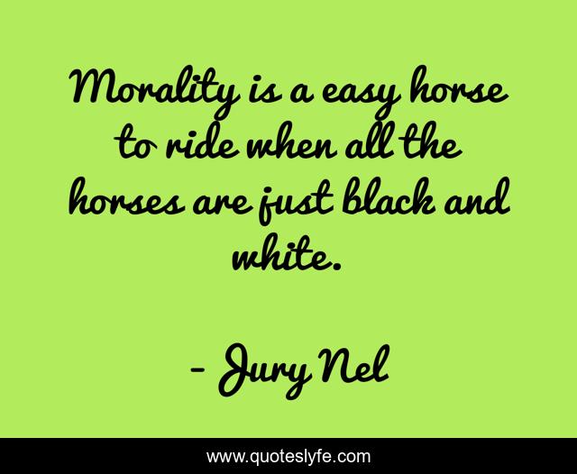 This page presents the quote "Morality is a easy horse to ride when all the horses are just black and white.". Author of this quote is Jury Nel. .