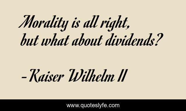 This page presents the quote "Morality is all right, but what about dividends?". Author of this quote is Kaiser Wilhelm II. This quote is about zimmerman-telegram, priorities, morality,.