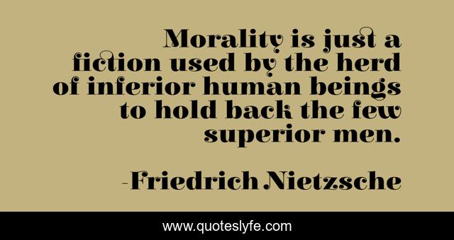 This page presents the quote "Morality is just a fiction used by the herd of inferior human beings to hold back the few superior men.". Author of this quote is Friedrich Nietzsche. This quote is about keep-going-going, life-lessons, morality,.