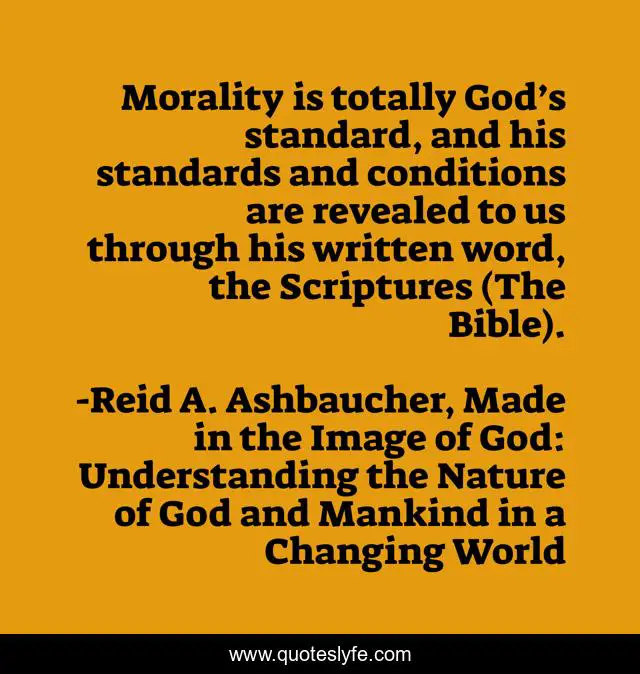 "Reid A. Ashbaucher, Made in the Image of God: Understanding the Nature of God and Mankind in a Changing World Quotes." Quoteslyfe.com, 2025. Sat. 06 Dec. 2025. <https://www.quoteslyfe.com/quote/Morality-is-totally-God-s-standard-and-280812>.