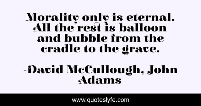 This page presents the quote "Morality only is eternal. All the rest is balloon and bubble from the cradle to the grave.". Author of this quote is David McCullough, John Adams. .