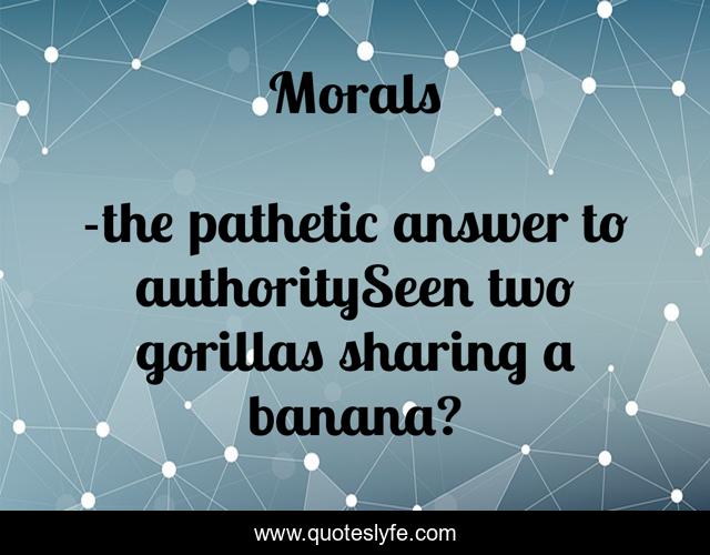 "the pathetic answer to authoritySeen two gorillas sharing a banana? Quotes." Quoteslyfe.com, 2025. Fri. 05 Dec. 2025. <https://www.quoteslyfe.com/quote/Morals-164126>.