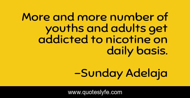 This page presents the quote "More and more number of youths and adults get addicted to nicotine on daily basis.". Author of this quote is Sunday Adelaja. This quote is about addicted, youth,.