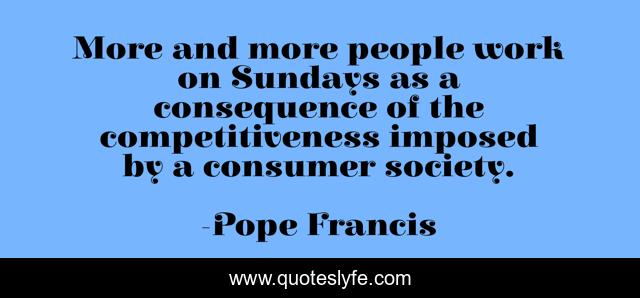 This page presents the quote "More and more people work on Sundays as a consequence of the competitiveness imposed by a consumer society.". Author of this quote is Pope Francis. This quote is about work, consumer, people,.