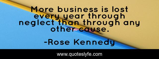This page presents the quote "More business is lost every year through neglect than through any other cause.". Author of this quote is Rose Kennedy. This quote is about through, lost, year,.