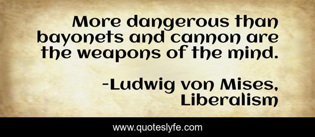 "Ludwig von Mises, Liberalism Quotes." Quoteslyfe.com, 2025. Fri. 05 Dec. 2025. <https://www.quoteslyfe.com/quote/More-dangerous-than-bayonets-and-cannon-are-255036>.