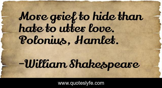 More grief to hide than hate to utter love. Polonius, Hamlet.